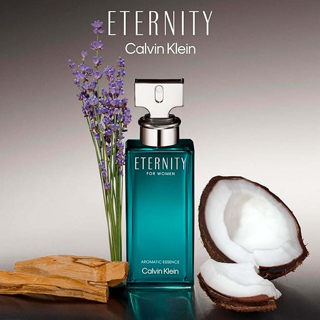 ETERNITY AROMATIC ESSENCE FOR WOMEN apresenta uma fragrância fresca, porém intensa, à família de fragrâncias Calvin Klein. Esta fragrância sensual combina um suave acorde de água de coco com notas herbáceas e florais de lavanda, culminando em um final ousado e sedutor de sândalo cremoso. Moderna. Irresistível. Experimente a essência da Eternidade.