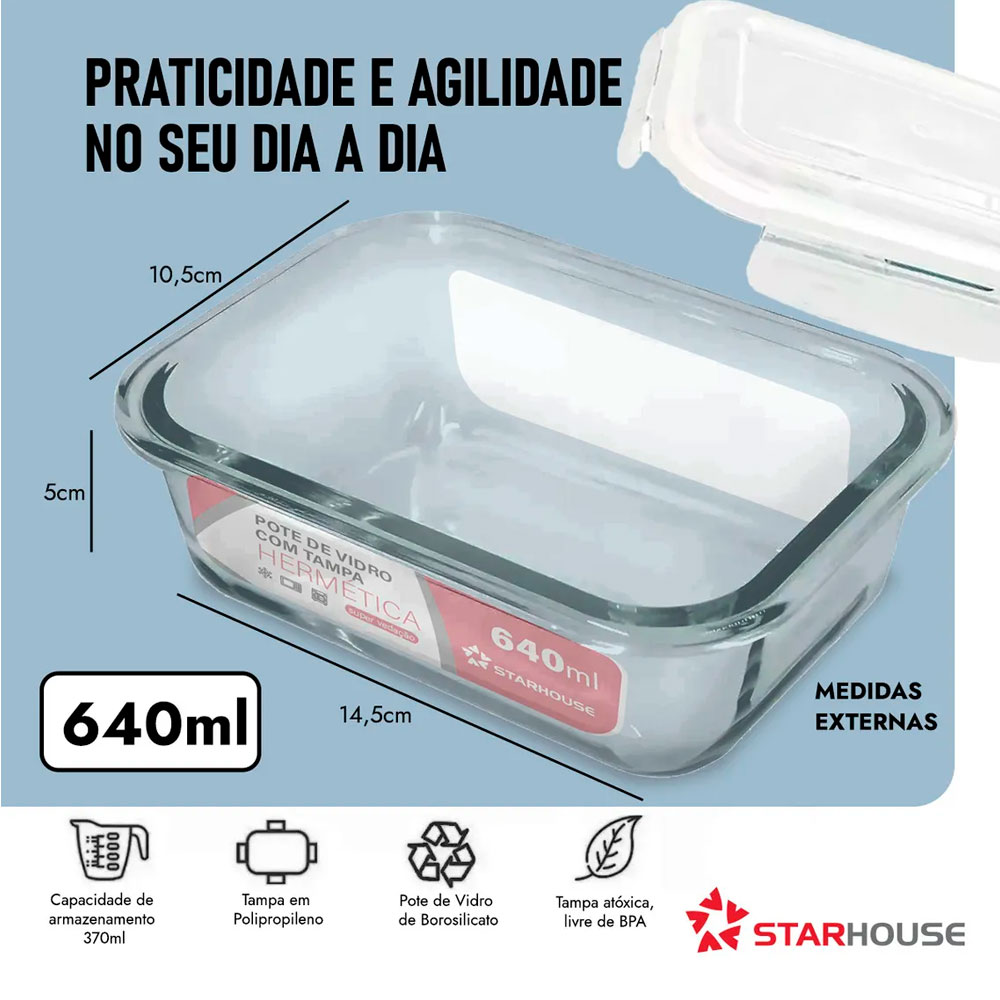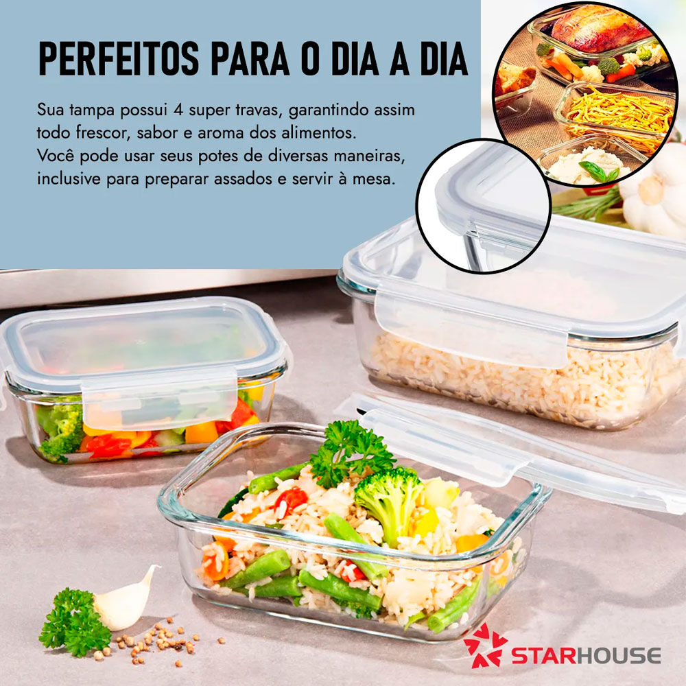 Kit 10 Potes Herméticos Vidro 640ml Starhouse Marmita Forno Micro-ondas